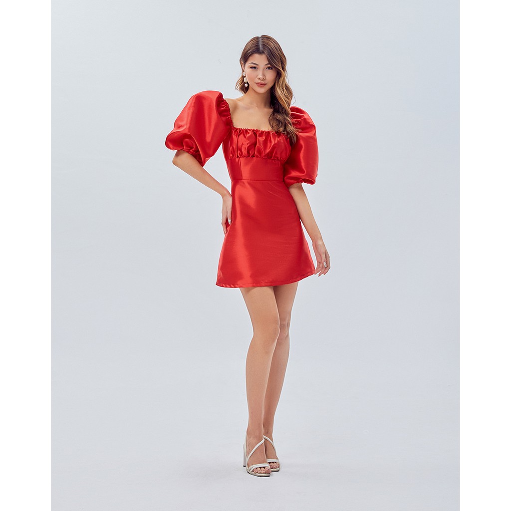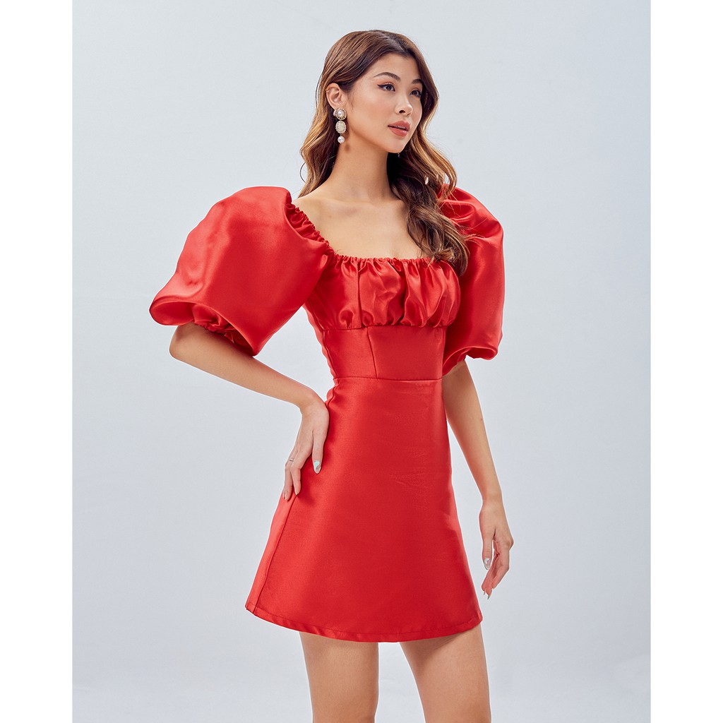 Đầm SheByShj tay phồng màu đỏ - Sandra Dress free ship