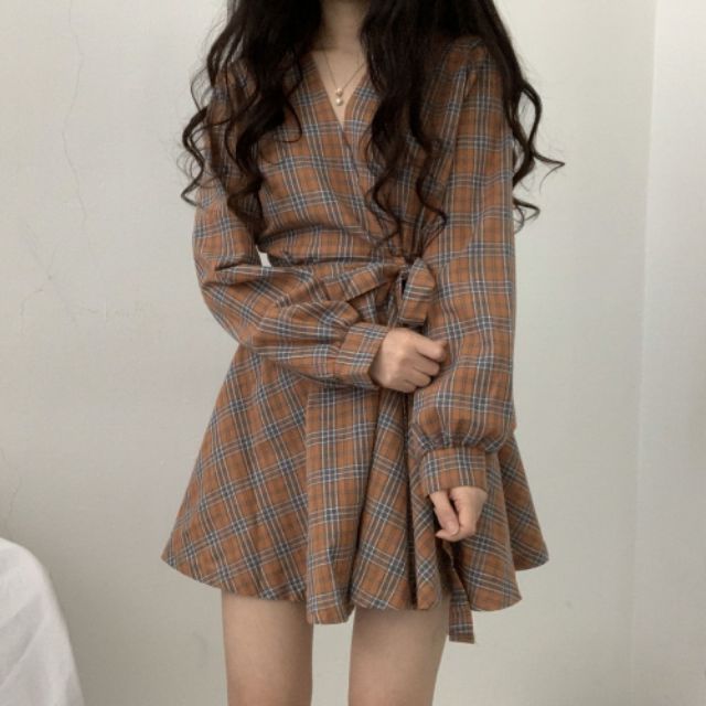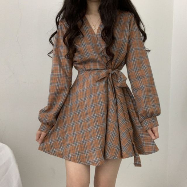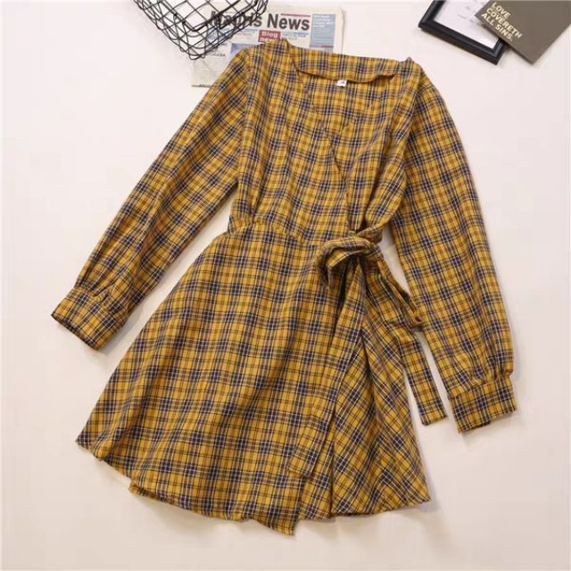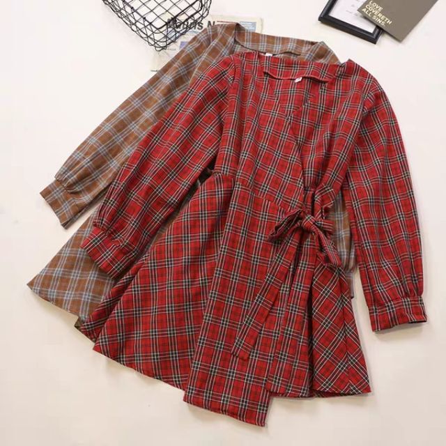 (Order) Váy caro dài tay form xòe free ship